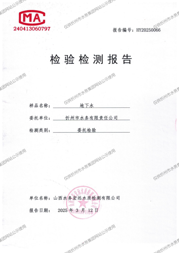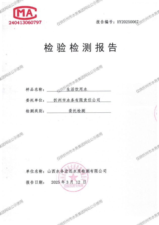 忻州城區(qū)公共供水水源水、出廠水、管網(wǎng)水、管網(wǎng)末梢水2025年3月份水質(zhì)信息公示