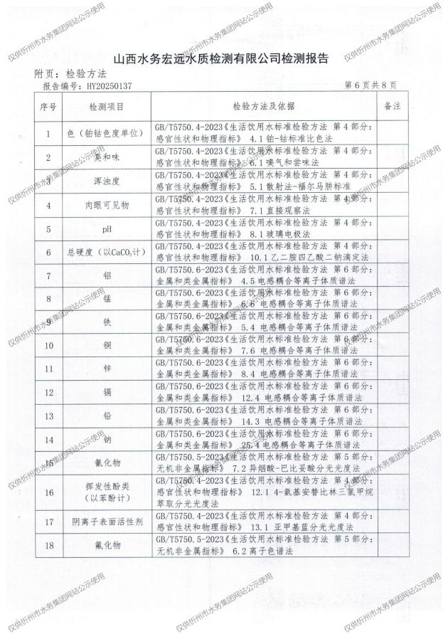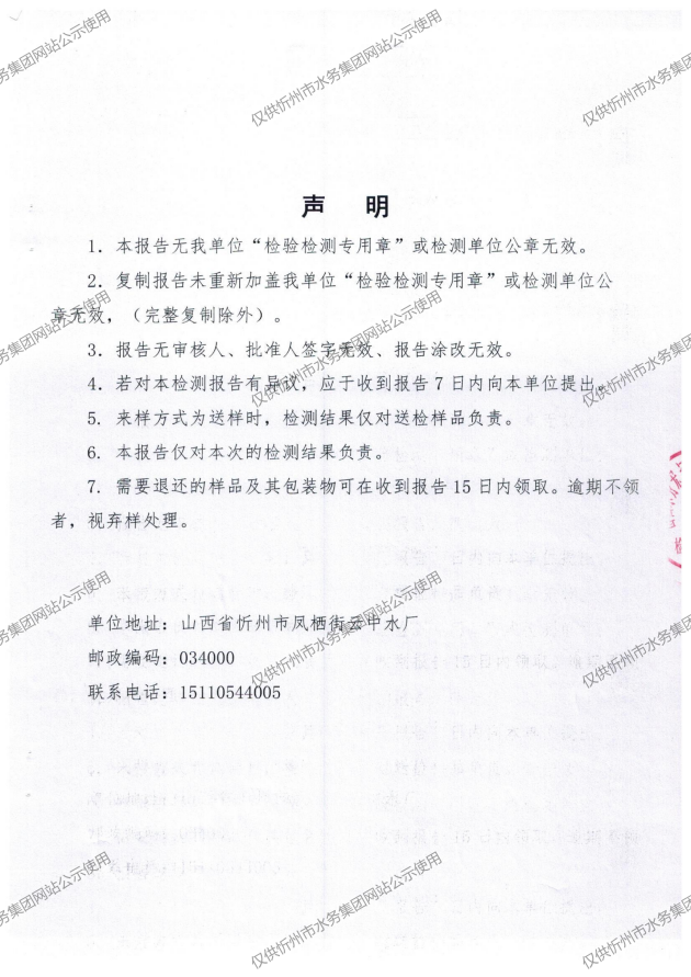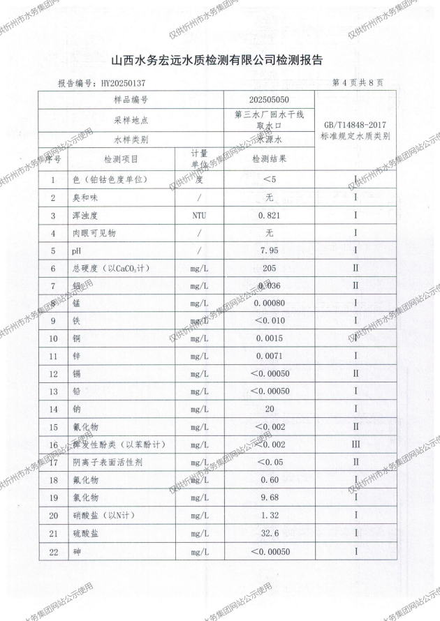 忻州城區(qū)公共供水水源水、出廠水、管網水、管網末梢水2025年5月份水質信息公示